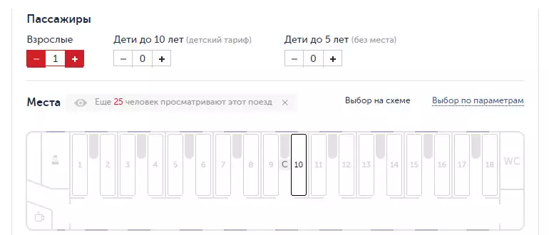 - в новом окне выберите тип вагона и оптимальное место на представленной схеме;